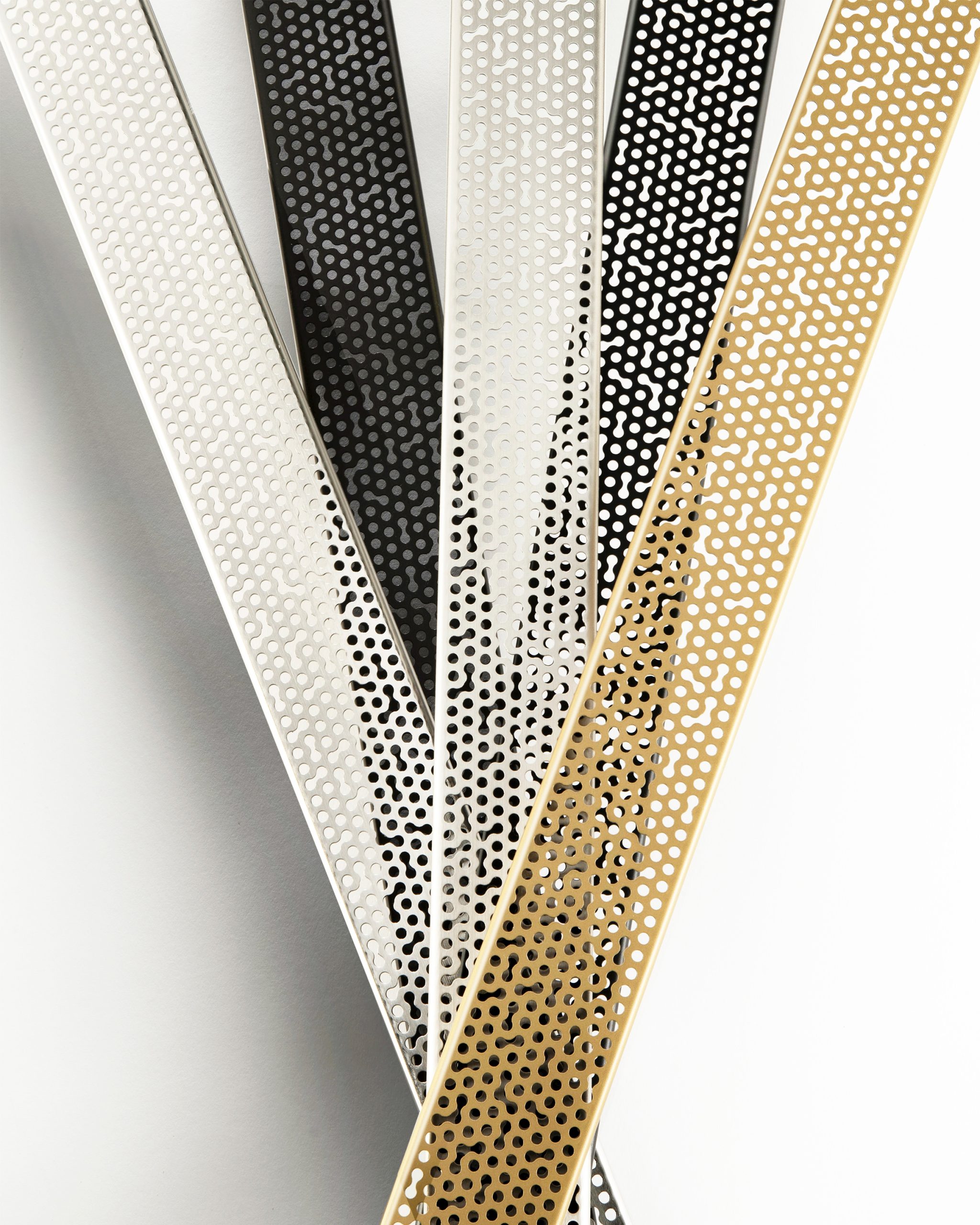 While the circular water droplet pattern is familiar, the rounded shapes introduce a progressive twist, adding flair and an upscale energy. Additionally, the edges of the cutouts reflect light off the steel, mimicking the glistening quality of water droplets. The Adhesion pattern is more than a captivating visual concept; it offers an original grate design with unique spacing that enables uninterrupted water flow.
